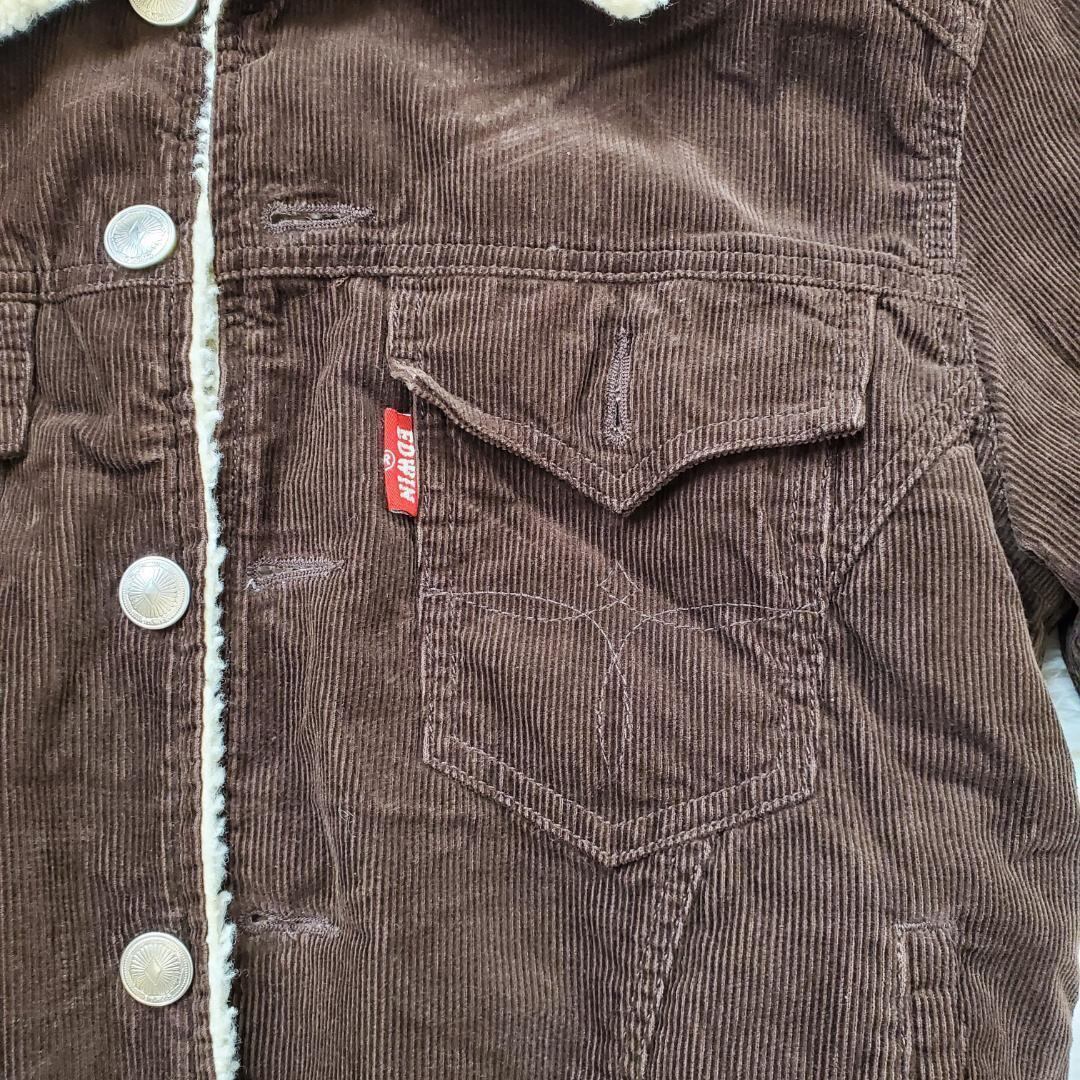 商品データ】 サイズ:Mサイズ カラー:ブラウン 身幅:47㎝ 着丈:58㎝ 袖丈:60㎝ 【商品説明】 裏起毛がボアになっていてあたたかいです。 ダークブラウンのコーデュロイジャケットがオシャレです。 若い方から大人の方まで大人気のEDWINです。 今の時期から春まで長く着れます。 通勤通学はモチロン仕事デートにも着れます。