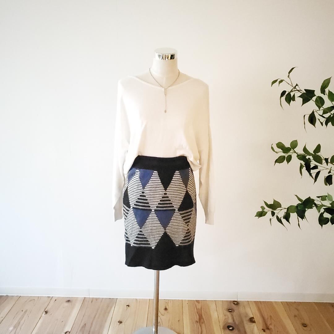 スカートは冬でも可愛く着こなせるニット素材になっています。