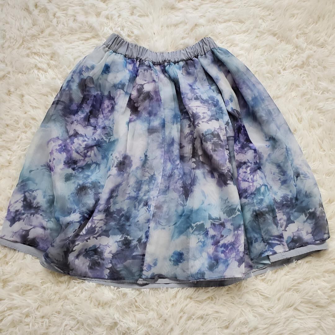 【商品データ】 サイズ:1 カラー:青 ブルー ウエスト:56cm 着丈:56cm 【商品説明】 裏地のついた花柄スカートです。 ふわっとしたシルエットが可愛いです。