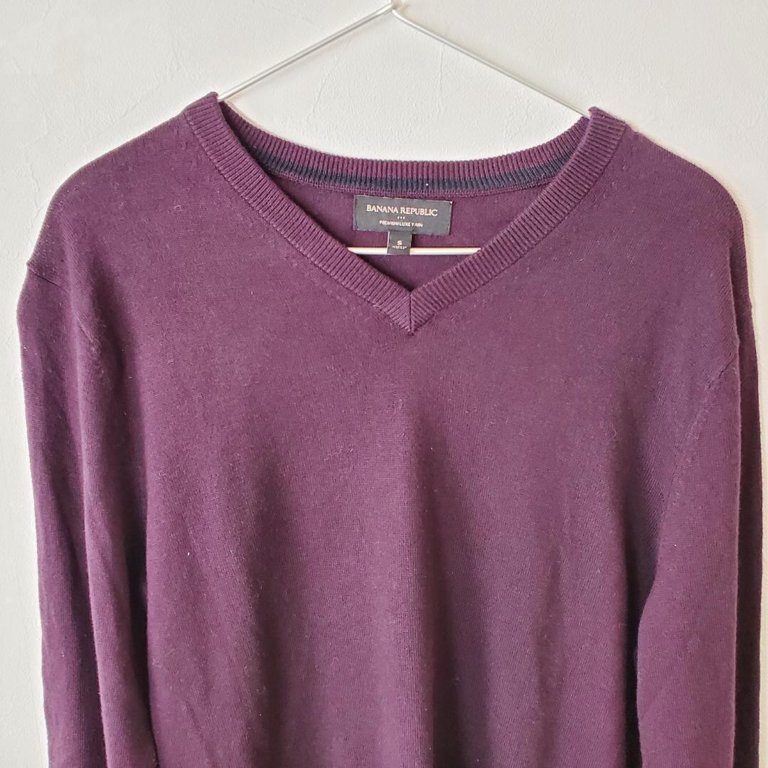 【商品データ】ふ サイズ:S カラー:深い紫 むらさき 身幅:48㎝ 着丈:62cm 袖丈:76cm 【商品説明】 人気のバナナ・リパブリックのセーターです。 ごあごあ感がなく着やすいです。 コートのインナーにオススメ! きれいめコーディネートにもピッタリ!