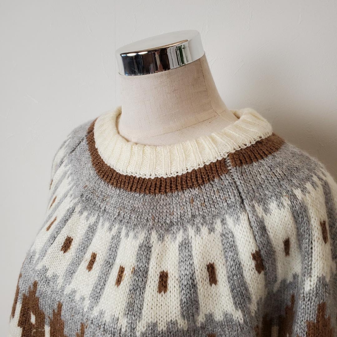 【商品データ】 サイズ:F カラー:オフホワイト 身幅:60㎝ 着丈:61㎝ 袖丈:69㎝ 【商品説明】 ゆったりとしたシルエットのセーターです。 お色は真白ではなくオフホワイトになります。 胸元の柄が冬らしくおしゃれです。